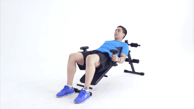 4.當(dāng)上臂與地面平行時(shí),將啞鈴舉回起始位置后重新開始。
