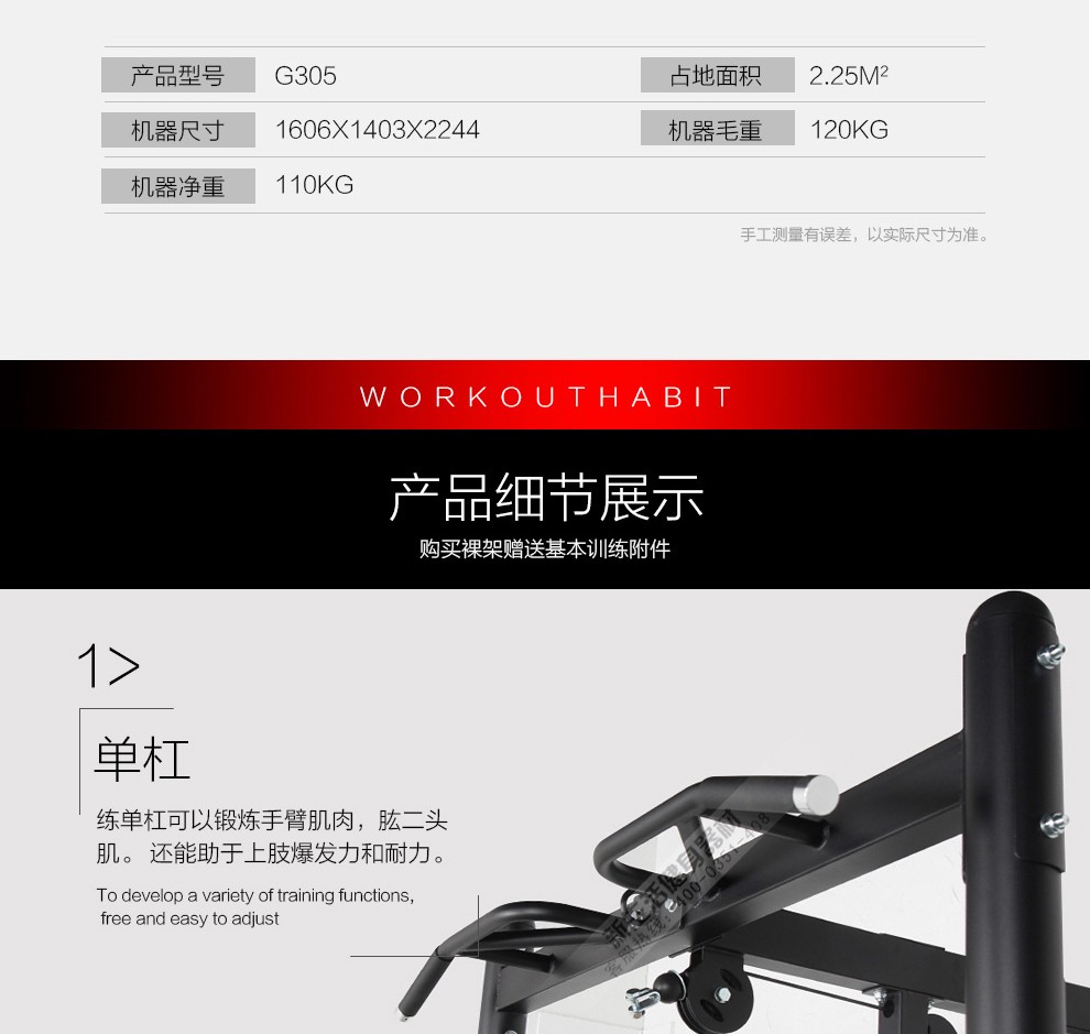 康強多功能單人站G305 綜合訓練器 深蹲架龍門架高低拉力量家用健身器材 裸機